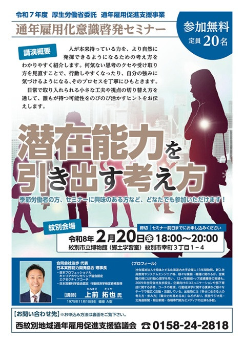 ◆定員:紋別会場20名(定員になり次第締め切ります)